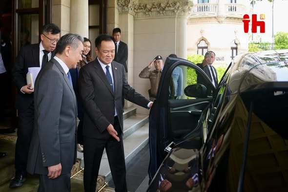 泰国头条新闻社报道,会谈结束后,阿努廷亲自驾驶一辆中国车企比亚迪的电动车,搭载王毅共进午餐。